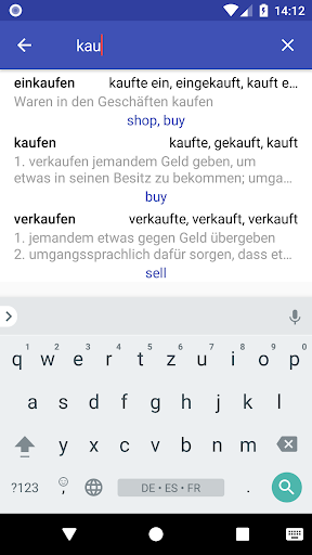 - Verbübersetzungen für: Englisch, Französisch und Spanisch.
