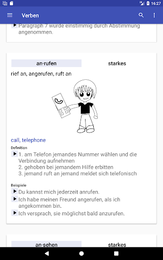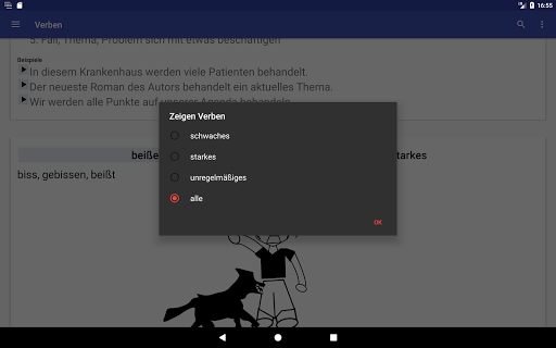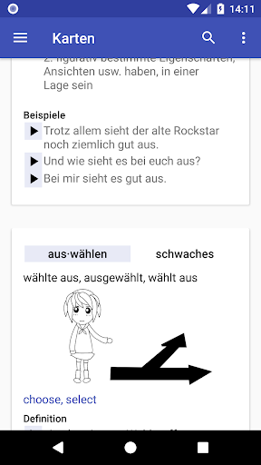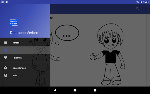 Diese Anwendung ermöglicht es Ihnen, schwaches, starkes und unregelmäßiges deutsche Verben zu lernen.