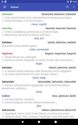 Es enthält die gebräuchlichsten deutschen Verben (650 und mehr hinzufügen).