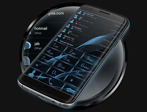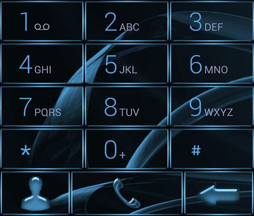 Dieses Thema wird Ihr Telefon-Wähltastatur geben einen modernen Look in schwarz und Azure mit einer Oberfläche aus Cyan Metallrahmen Tasten.