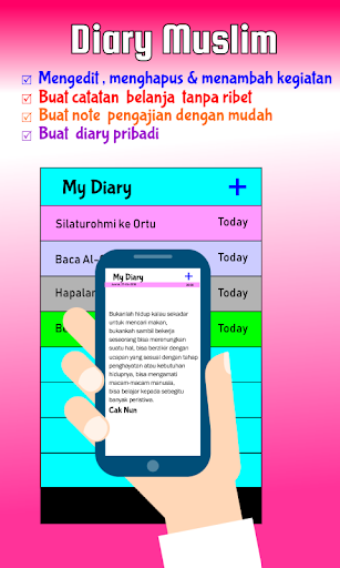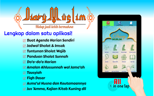 Aplikasi Diary Muslim Pocket menyediakan semua konten dan fitur dalam satu aplikasi. Aplikasi ini berisi Kegiatan harian, hapalan do'a, hapalan surat-surat pendek, amalan-amalan ahlussunnah wal- jamaah, muslim diary checklist dan fitur-fitur lainnya.