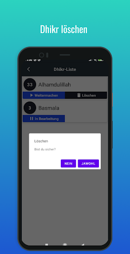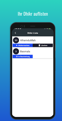 Sie können Ihr gespeichertes Tesbihat fortsetzen, wann Sie mit dieser intelligenten Dhkir-Anwendung fortfahren möchten. Sie können Namen von ALLAH, Salaah Tesbihat und Duas zählen. Diese intelligente Tasbih-Anwendung zeichnet alle Dhkirs und Gebete auf.