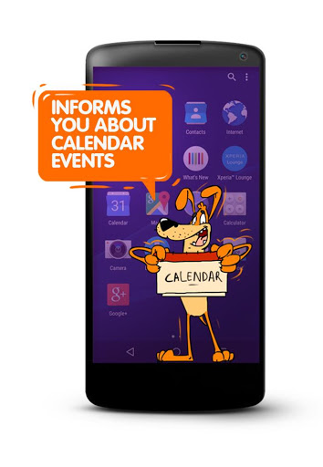 We present you the funny friend and advisor 'Dog', who lives in your smartphone. It will remind you about missed phone calls, SMS-messages, calendar events and the built-in alarm clock. The settings are very flexible: you can define the number of reminders and set their priority.