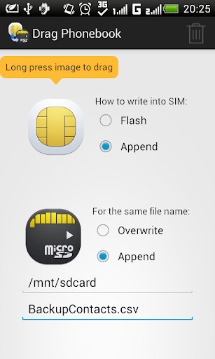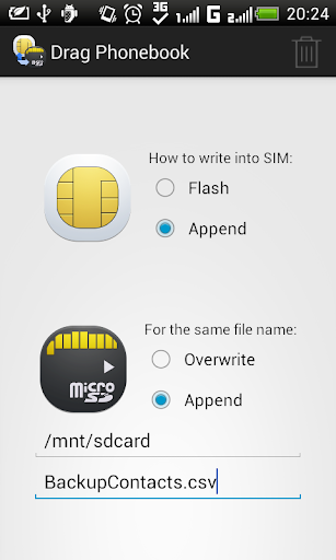 Drag Contacts provides the easiest way to backup contacts from SIM to SD card.