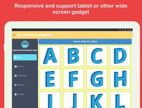 On this app contain several instructions about how to draw 3D Alphabet Letters & Numbers step by step easy for kids and adults. Tutorials made easy with illustration pictures. What are tutorial how to draw 3D Letters & Numbers included on this app? They are: