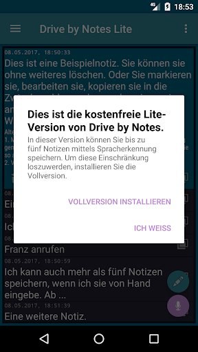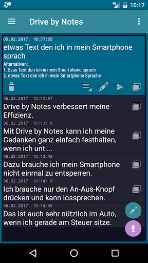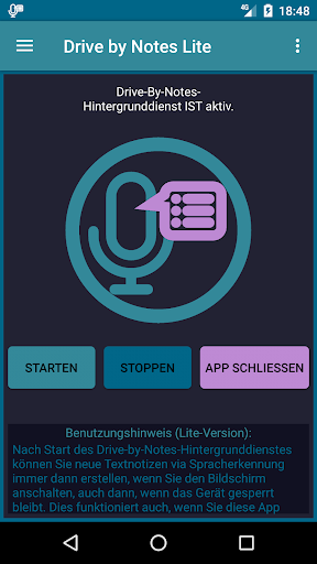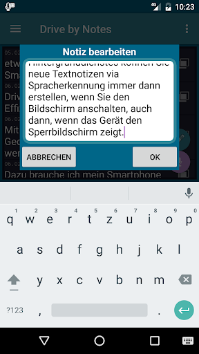 Wenn ich unterwegs bin, gibt es Momente, in denen ich meine Gedanken so schnell und unkompliziert wie möglich festhalten möchte. Dafür ist Drive by Notes da! Drive by Notes ermöglicht es mir, Notizen zu speichern, ohne das Smartphone entsperren oder in die Hand nehmen zu müssen. Sobald ich den Bildschirm aktiviere (und dafür genügt ein Tastendruck auf die An-/Aus-Taste oder ein Fingeradrucksscan), kann ich in das Gerät sprechen: Drive by Notes verwandelt dann meine Gedanken in Text und speichert sie als Notiz ab.