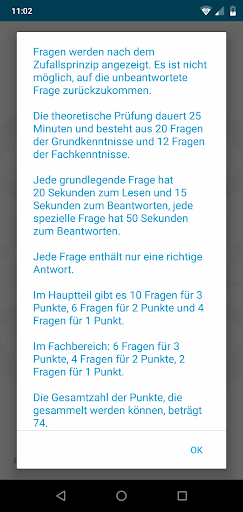 Die Tests umfassen grundlegende und spezielle Verkehrsfragen. Eine Anleitung für das Staatsexamen gibt es in der App.