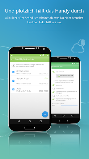Der Good-Night-Scheduler schaltet auf Wunsch Funktionen wie die WLAN- oder Mobilfunkverbindung automatisch für einstellbare Zeiträume aus. So schicken Sie auch Ihr Handy nachts schlafen und sparen Energie. Für extreme Energiesparfüchse: Der Scheduler kann auch auf das Ein- bzw. Ausschalten des Bildschirms reagieren.