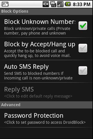 DroidBlock allows you to block incoming calls with numbers in blacklist.