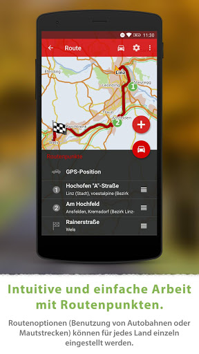 • Erweiterte Routenplanung mit Nutzung von Wegpunkten und Möglichkeit der Vermeidung von Mautstrecken in bestimmten Ländern oder über die gesamte Länge der Strecke .