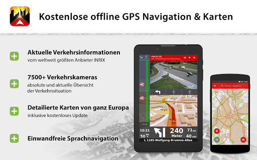 • Offline Turn-by-Turn Sprachnavigation ohne nötige Internetverbindung