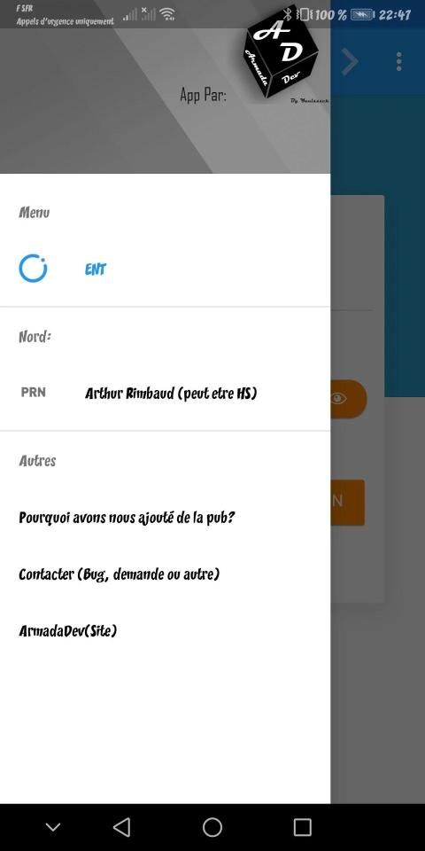 (Cette application est géré par yanisssch donc elles est pas affilié à pronote ni aux développeurs de l'ent ou aux établissements. Si des changements on lieu ou vous voulez me contacter merci de m'envoyer un mail à: yanisssch@armadadev.fr)