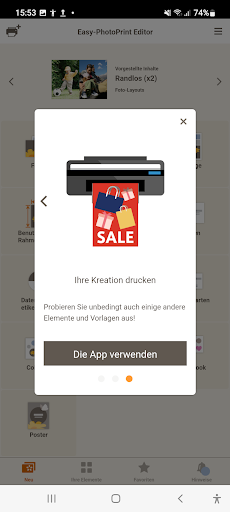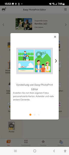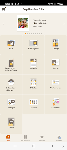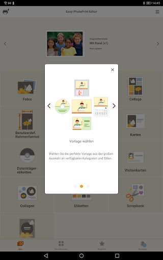Mit Easy-PhotoPrint Editor, einer benutzerfreundlichen Fotodruck-App, können Sie Ihrer Kreativität freien Lauf lassen. Wählen Sie aus Vorlagen und einem Editor für freies Layout zum Erstellen von benutzerdefinierten und personalisierten Inhalten mit Bildern von Ihrem Smartphone, Tablet und der Cloud (Fotolayouts, Karten, Collagen, Kalender, Etiketten, Passbilder, Visitenkarten, Aufkleber und Poster).