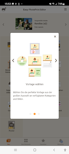 Wählen Sie einfach die Art der Vorlage aus, die Sie erstellen möchten. Dann können Sie Ihre Fotos bearbeiten, dekorieren und ausdrucken.