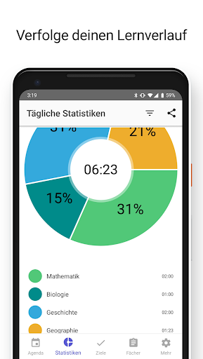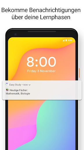 - Benachrichtigungen über Fächer, welche du Lernen musst und eine Tagesbilanz;