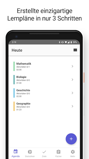 - Passe deine Fächer mit Farben, Namen und Lernzeit an;