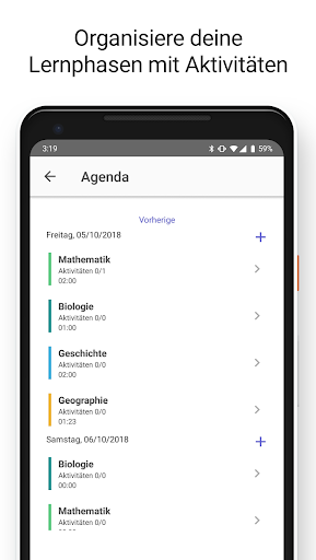 Lernroutinen werden in Zyklen durchgeführt, sodass du wichtige Inhalte wiederholst und sich kein Lernhaufen ansammelt. Es ist perfekt für jene, die sich auf eine Klausur, die Schule, Uni vorbereiten möchten.