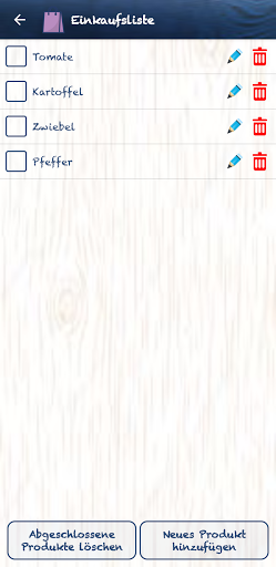 Sie können Ihre benötigten Produkte in der Einkaufslistenfunktion aufzeichnen.