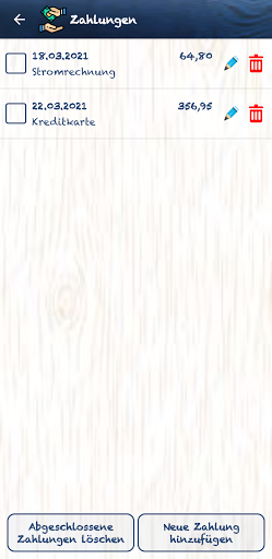 Zahlungsliste, in der Sie Ihren bevorstehenden Zahlungsauftrag bis zum Fälligkeitsdatum verfolgen können. Außerdem können Sie Monat für Monat Ihre gesamten anstehenden Zahlungsbeträge anzeigen.