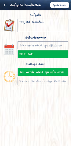 Aufgabenliste, mit der Sie optional Aufgaben mit Fälligkeitsdatum und Fälligkeitszeit erstellen können,