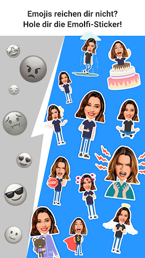 Mit Emolfi Keyboard erhältst du Dutzende von emotionalen Stickern, die auf Selfies basieren. Diese kannst du bei WhatsApp, Messenger oder jeder anderen Chat-App und in jedem sozialen Netzwerk verwenden. Darüber hinaus werden Sticker automatisch mit dem von dir eingegebenen Text kombiniert, sodass aus einfachen Chats vollständig visualisierte Nachrichten werden.