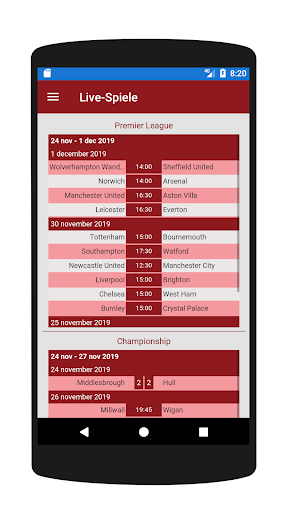 - Live-Ergebnisse: Verfolgen Sie Live-Spiele über Online-Ergebnisse und erfahren Sie alles, was im englischen Fußball passiert. Dienst ähnlich dem, der von anderen Anwendungen wie Roja Directa angeboten wird