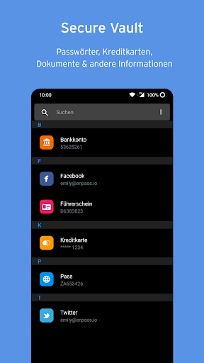 - Speichert alles: Sicherer Tresor für Ihre Login-Daten, Kreditkarten, Bankkonten, Ausweise, Anhänge und andere Informationen.