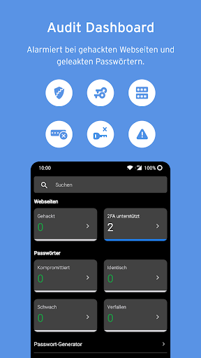 - Automatisch auf alte, schwache und kompromittierte Passwörter prüfen.