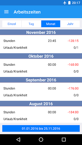 • Auswertung der monatlichen oder jährlichen Arbeitsstunden mit Überstunden/Minusstunden für die einzelnen Mitarbeiter
