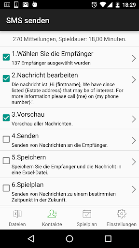 ★ Fügen sie die Platzhalter {Vorname}, {Nachname}, {Firma} usw in die Nachricht ein, um dadurch eine persönliche Nachricht zu erhalten. Beispiel: „Lieber {Vorname}, wir freuen uns auf dein Kommen!“