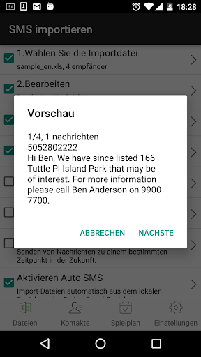 Aufgrund Android SMS-Begrenzung kann jeder app senden nur 100 Meldungen innerhalb einer Stunde. Sie müssen Excel Gruppe Text-Plug-in installieren, um die SMS Beschränkung für SA Group Text verlängern.