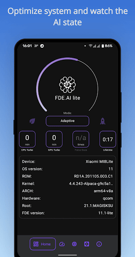 Wie Sie vielleicht von der App-Namen "FDE.AI" erhalten haben, kann es uns sagen, dass es ein grundlegendes KI-Inside hat. AI lernt, wie Sie Ihr Gerät verwenden, überprüfen Sie das aktuelle Nutzungsszenario und passen Sie einige Systemparameter in Echtzeit an, um Ihnen beste Nutzungserfahrung zu erhalten. Keine personenbezogenen Daten werden gesammelt oder überall gesendet.