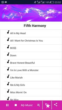 You can playing FIFTH HARMONY Songs with this application for streaming only like "All In My Head , All I Want for Christmas Is You , BOss etc