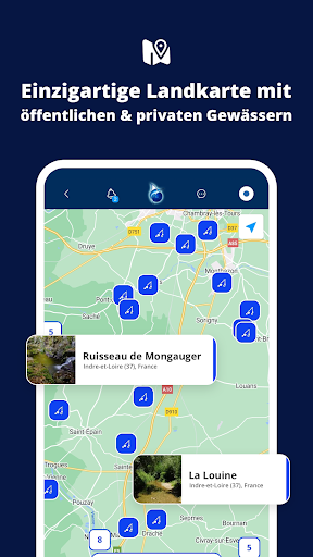 • Entdecke über 4.000 geprüfte private Fischgründe, von Flüssen über Seen bis hin zum Meer