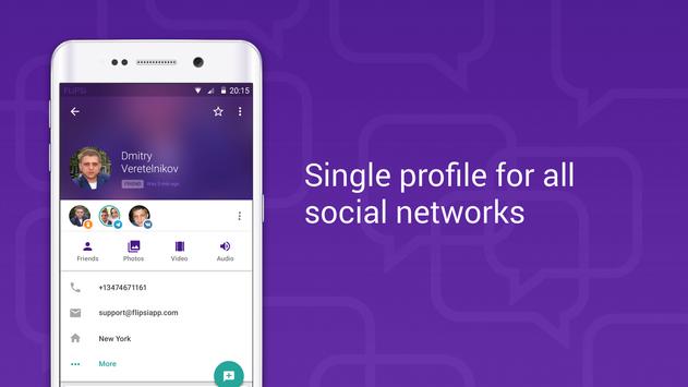 Flipsi repräsentiert alle Vorteile der sozialen Netzwerke und Messenger in einer Anwendung! Das ist ein absolut kostenloser Service ohne aufdringliche Werbung! Es vereinigt populäre soziale Netzwerke und aktuelle Messenger (Twitter, Yahoo!, Tencent Weibo, Vkontakte, Moj Mir (meine Welt), Jabber, ICQ, Telegram; es ist ebenfalls eine Integration mit Sina Weibo, QQ, Baidu, Skype eingeplant). Flips gewährt umfassende Möglichkeiten für eine grenzenlose Kommunikation. Es ist eine einfache und schnelle Anwendung, auf die Sie so lange gewartet haben! Enjoy!