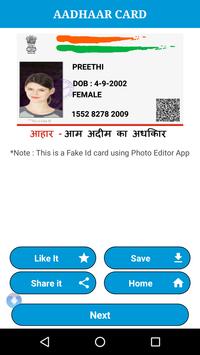Sie haben keine ID-Karte?Kein Problem.Machen Sie jetzt Ihre ID-Karte.Wählen Sie aus der Liste der gefälschten ID-Karten aus, die in dieser App für Aadhar-Karte, Führerschein, Kreditkarte, Debitkarte, Pan-Karte usw. bereitgestellt werden. Diese App kann hilfreich sein, um mit Freunden zu genießen.Sie können diese Karte verwenden, wenn ein Freund Ihrer Anfrage mit Ihrer Karte erforderlich ist.Es wäre viel Spaß, diese gefälschten ID-Karten zu teilen.Sie müssen einfach die ID-Karte Ihrer Wahl auswählen.Holen Sie Ihr Foto aus der Galerie ab und fügen Sie es auf ID-Karte ein.Sie werden aufgefordert, ein wenig Details für ID-Karten bereitzustellen, um ihm einen echten Look zu geben.HINWEIS: Alle ID-Karten wurden an der Unterseite alle IDs gefälschter ID markiert.Teilen Sie diese App mit Freunden und Verwandten und lassen Sie Ihren Kommentar und die Bewertung.