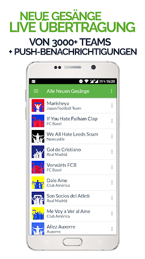 "FanChants ist eine Sammlung von mehr als 20.000 Gesängen für mehr als 3.000 Teams weltweit. Von gemein zu langweilig und frech bis lustig, geben die Gesänge Einblick wie die Fans einer Mannschaft einem Stadion einheizen.”