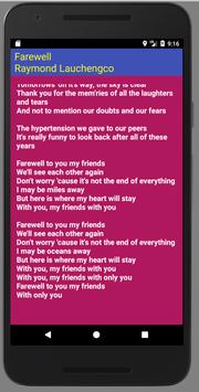 Full lyrics of the song "Farewell (To You My Friend) by Raymond Lauchengco.