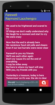 Lyrics of the song "Farewell" by Raymond Lauchengco.