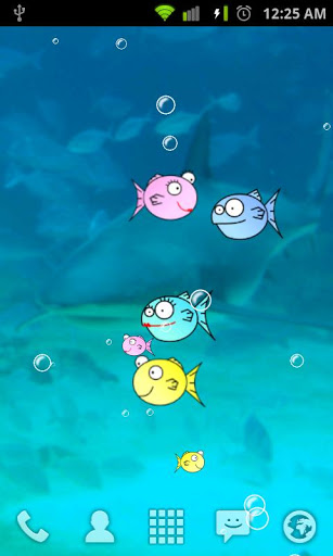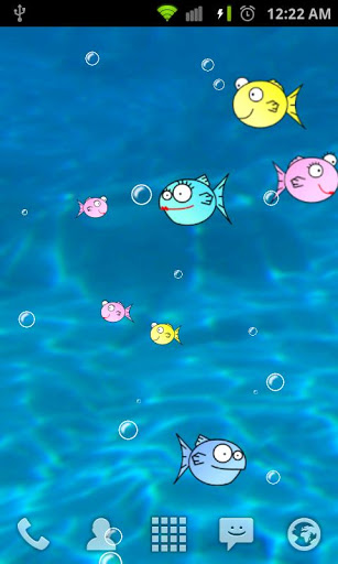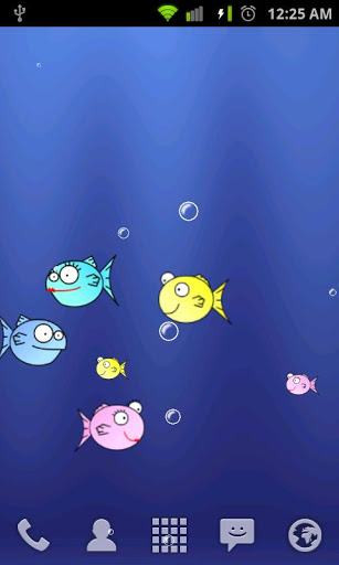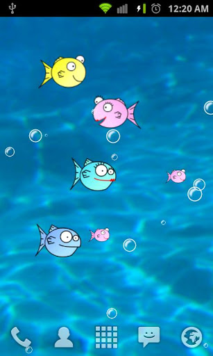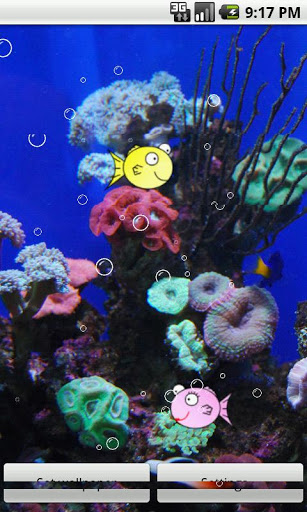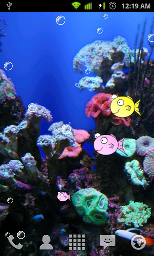 Fun cartoon aquarium live wallpaper with cute fish that love to interact with you.