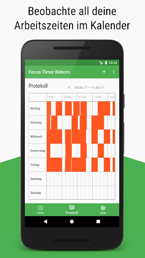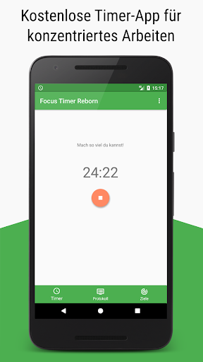 Diese Android Applikation ist ein Arbeitszeit Timer. Sie enthält außerdem Statistiken und Leistungsanalysen deines Arbeitsprotokolls. Bleib fokussiert und benutze Focus Timer Reborn zum Lernen, Arbeiten und trainieren. Verschwende deine Zeit nicht mehr mit Ablenkungen, sondern konzentriere dich auf das, was wirklich wichtig ist.