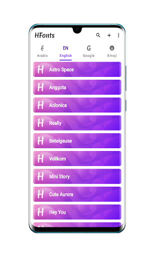 Große Sammlung von Schriftarten und Emoji.