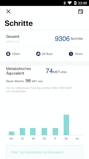 Weiterführende Informationen erhältst du in den einzelnen Abschnitten (Schritte, Schlaf etc.).
