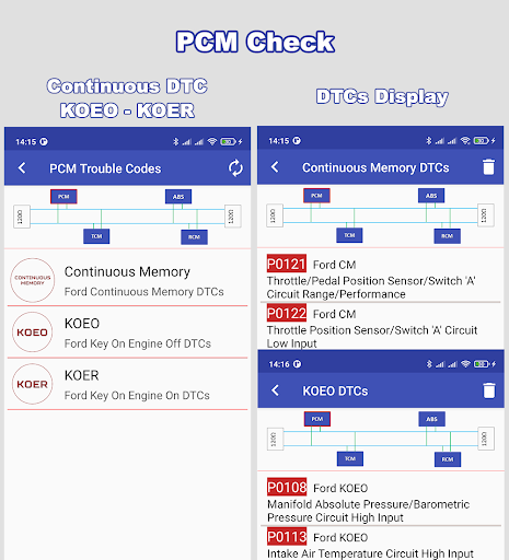 - Build-In-DTCS-Datenbank mit über 10000 Fehlercodes für Ford-Hersteller-spezifische Codes