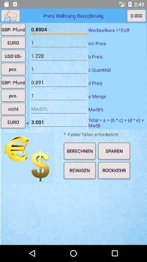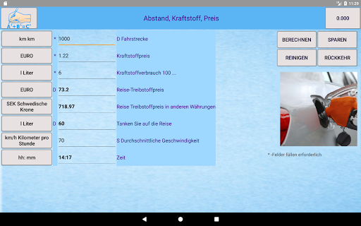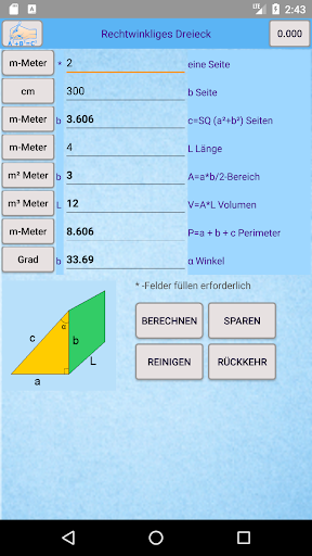 Berechnungsergebnisse können gespeichert werden, um eine Vorlage für die nächste Berechnung zu erstellen. Für die nächste Berechnung sind Mindestdaten einzutragen. Berechnungen in ausgewählten Einheiten, die für oft die notwendigen Berechnungen benötigt werden.