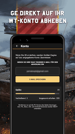 Was wäre, wenn wir Ihnen sagen würden, dass Sie nicht mehr für Eagles in War Thunder bezahlen müssen? Es ist wahr! Benutzen Sie einfach Ihr Smartphone oder Tablet, um ein paar einfache Aufgaben auszuführen, die von unserer App vorgeschlagen werden.
