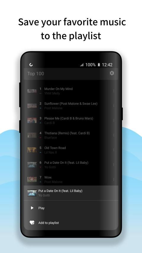 Discover and listen to hottest music these days, from 1st to 100th in real time!