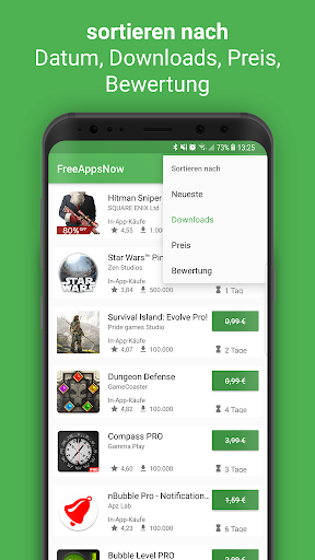 ✓ Sie können die Apps nach Neuem, Downloads, Preis, Bewertung oder Ablaufdatum sortieren.