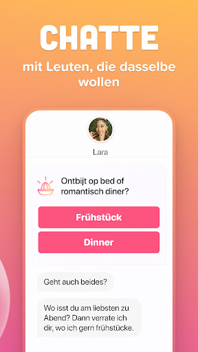 Wähle zum besseren Kennenlernen aus Hunderten von Möglichkeiten eine saftige Frage aus und beantworte sie selbst, bevor du in der Flirt App zu chatten beginnst. Manche Fragen sind einfach nur süß, während ihr bei anderen Geheimnisse preisgeben könnt. Eine Prise Humor darf bei einem Flirt nicht fehlen, oder? 😉