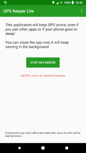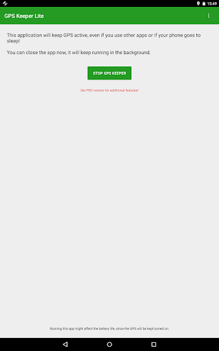 Diese Anwendung hält dauerhaft die GPS-Verbindung, auch wenn der Bildschirm ausgeschaltet wird. Auf diese Weise werden Sie keine GPS-Fix verlieren, wenn Ihr Telefon einschlafen.